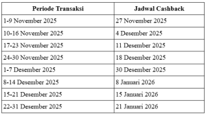6. Cashback akan diberikan kepada Nasabah yang sesuai aturan program berikut: