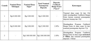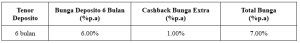 Catatan: Hanya nominal dana segar yang mendapatkan cashback bunga extra 1.00% p.a