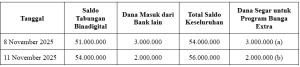 c. Terhitung dana masuk ke tabungan Binadigital mulai dari 8 – 11 November 2025